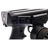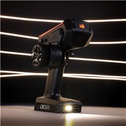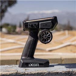 The iXSR transmitter features contactless hall-effect sensors that offer advanced precision, low maintenance and ultra-smooth feel that increases the accuracy and precision of the steering and throttle motion. Its ergonomics features left and right-hand compatibility, among other options to tailor the transmitter to how you want to drive.