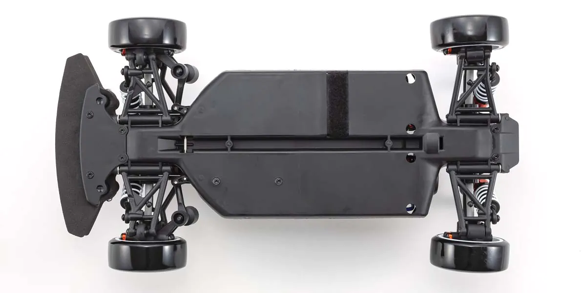 Completely new chassis realizes low center of gravity with its simple, functional design. Featuring an integrated gearbox that optimizes torsional rigidity of the main chassis, the nylon material reduces weight while improving impact resistance. Each key component has been reinforced in this simple design without upper deck.