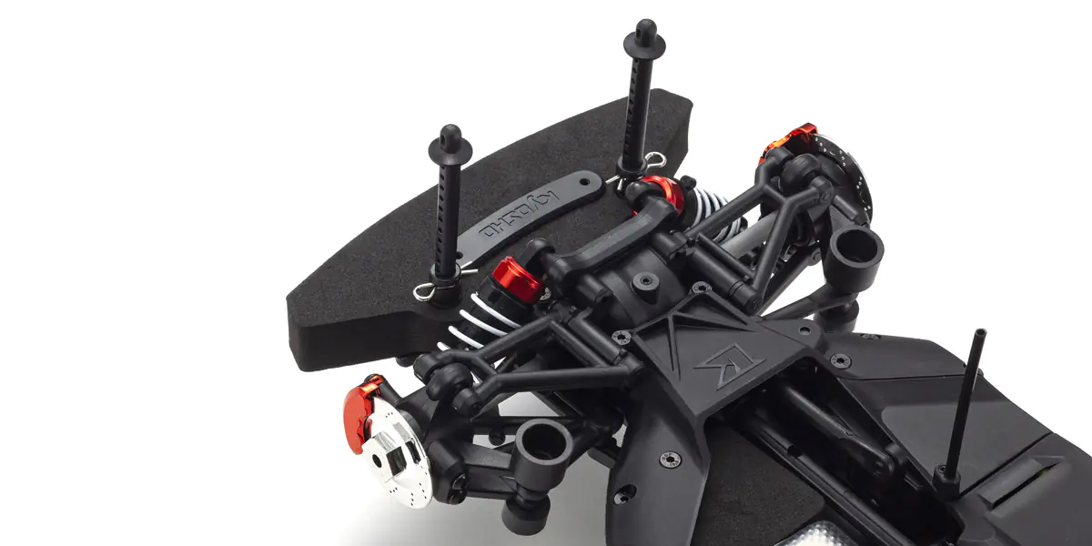 For the pure enjoyment of R/C car driving, the combination of a beautifully reproduced car body with the FAZER series chassis can’t be beaten. Kyosho has taken its standard touring car chassis and given it a full model makeover that has evolved performance to a new level. A simplified design with fewer parts has improved maintenance efficiency and reduced weight while core strength and rigidity has been increased through new materials and ribbing and stiffeners on front and rear. In addition, the symmetrical chassis design synergizes excellent front-rear balance through the suspension with responsive control, irrespective of power source. Featuring front & rear gear differentials, oil shocks and full ball bearing specs, the high durability and impact resistance allows drivers to unleash the full potential of the chassis. Brake disc wheel hubs with two different offsets (0mm, +5mm) provide compatibility with 190mm and 200mm width body styles and allows the wheelbase to be adjusted to 260mm by replacing some parts (sold separately) for compatibility with other 1/10 scale body styles, in addition the body included. The Readyset package comes fully assembled and includes everything except charger and battery for the chassis, and batteries for the transmitter.
