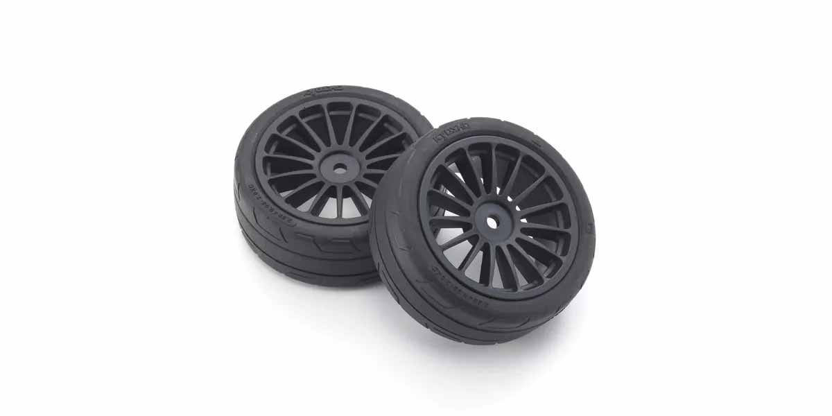 Original low-profile semi-slick pattern tires and inner sponge (FAT701M) combine with 15-spoke black wheels for enhanced racing appeal.